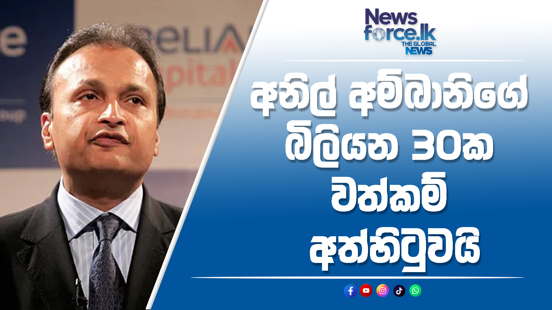 Home»උණුසුම් පුවත්»අනිල් අම්බානිගේ බිලියන 30ක වත්කම් අත්හිටුවයි