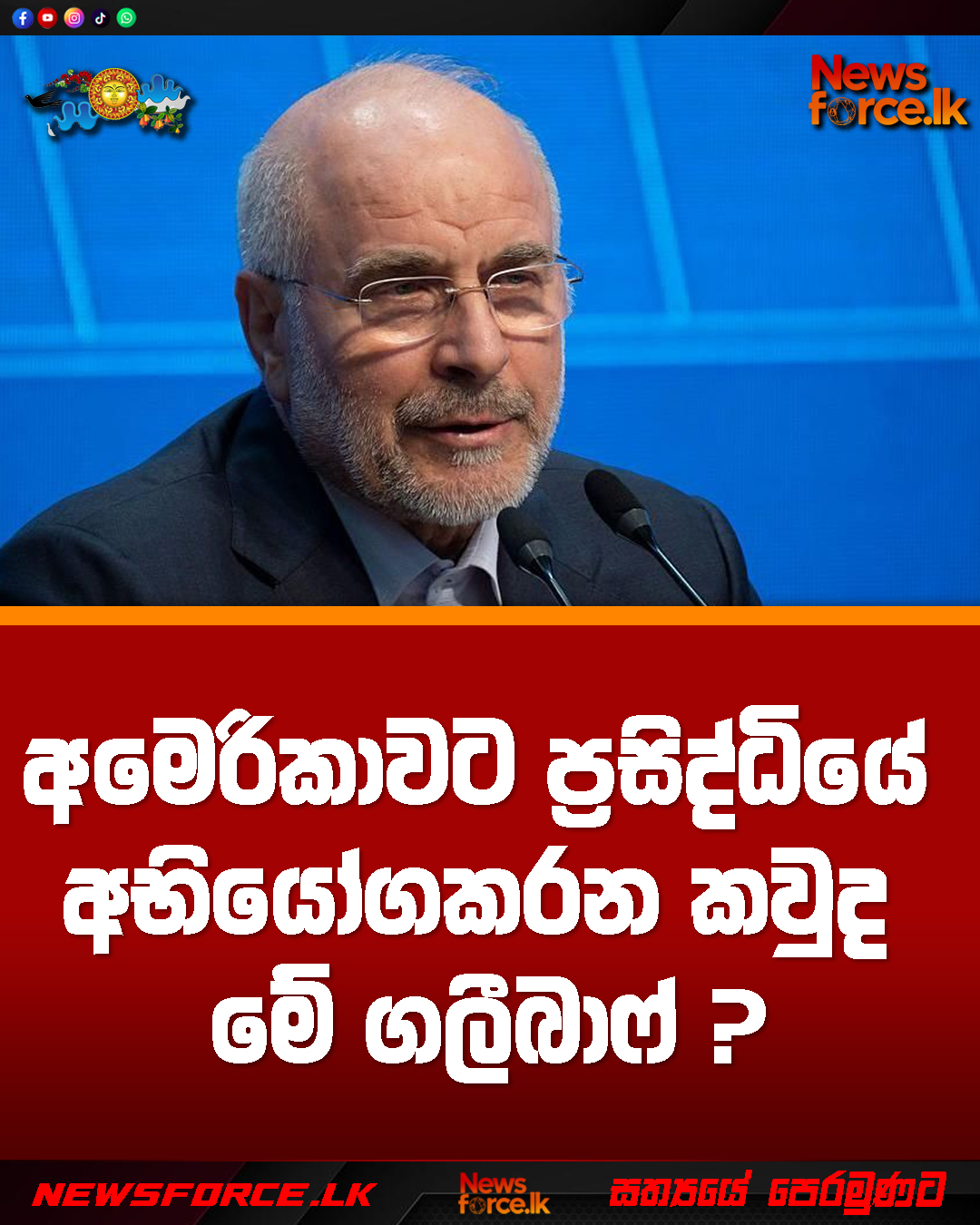 අමෙරිකාව විසින් ඉරානයට එරෙහි යුද්ධය ආරම්භ කිරීමෙන් අනතුරුව, අමෙරිකාවට ප්රසිද්ධියේම අභියෝගකළ පුද්ගලයෙකු ලෙස 64 හැවිරිදි මොහොමඩ් බාගර් ගලීබාෆ් හැදින්විය හැකිය.