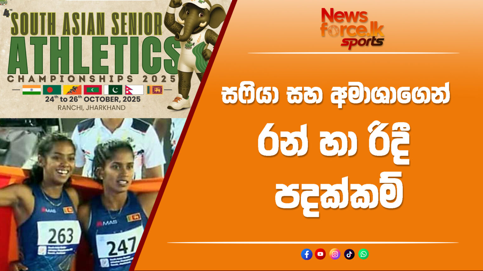 ඉන්දියාවේදී පැවැත්වෙන 4 වන දකුණු ආසියානු මලල ක්‍රීඩා ශූරතාවලියේදී මීටර් 100 කාන්තා ඉසව්වෙන් රන් සහ රිදී පදක්කම් දිනා ගැනීමට ශ්‍රී ලංකාව සමත් විය.