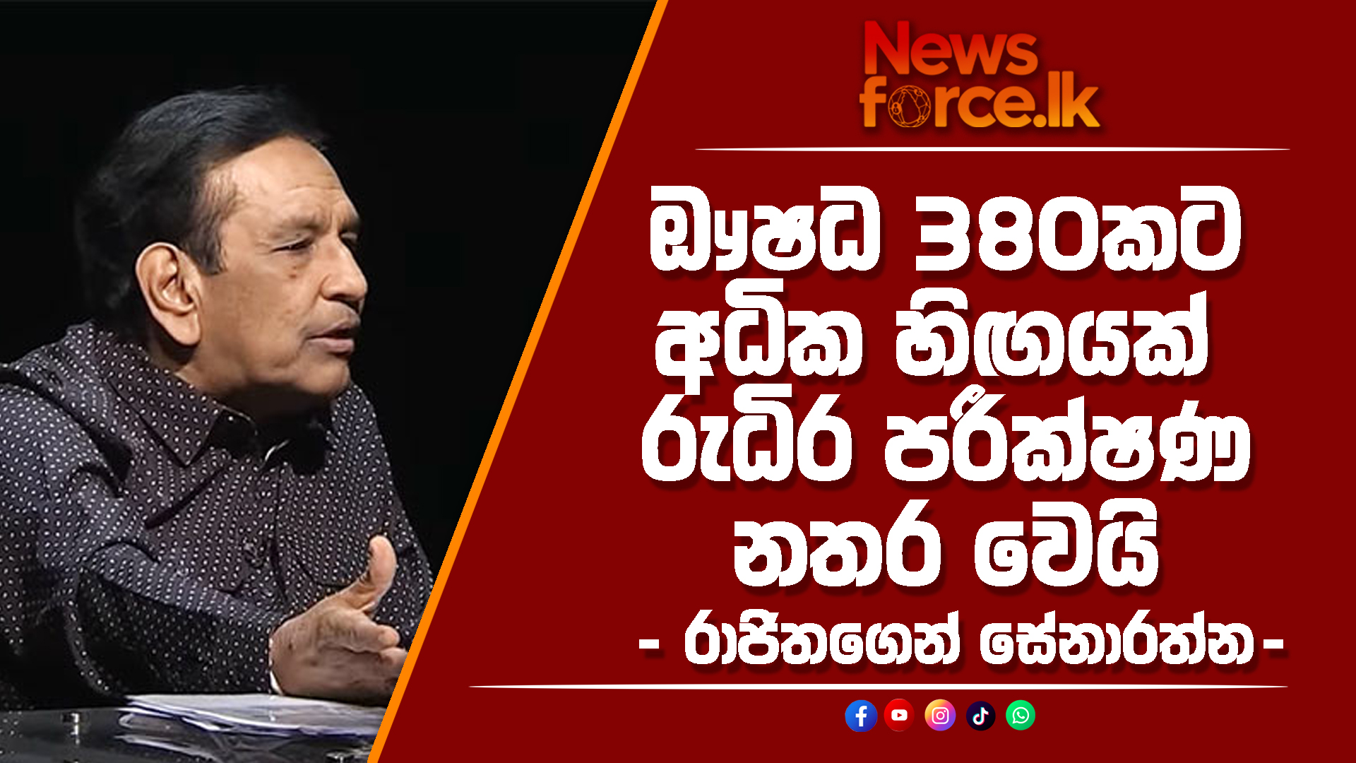 රජයේ රෝහල් පද්ධතිය තුළ මේ වනවිට අත්යවශ්ය ඖෂධ ඇතුළුව ඖෂධ වර්ග 380කට අධික සංඛ්යාවක බරපතල හිඟයක් පවතින බව හිටපු සෞඛ්ය අමාත්ය රාජිත සේනාරත්න පවසයි.