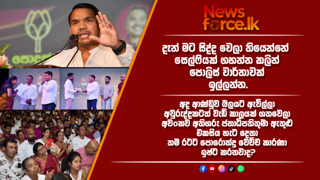 Home»උණුසුම් පුවත්»දැන් මට සිද්ද වෙලා තියෙන්නේ , සෙල්ෆියක් ගහන්න කලිනුත් පොලිස් වාර්තාවක් ඉල්ලන්න.