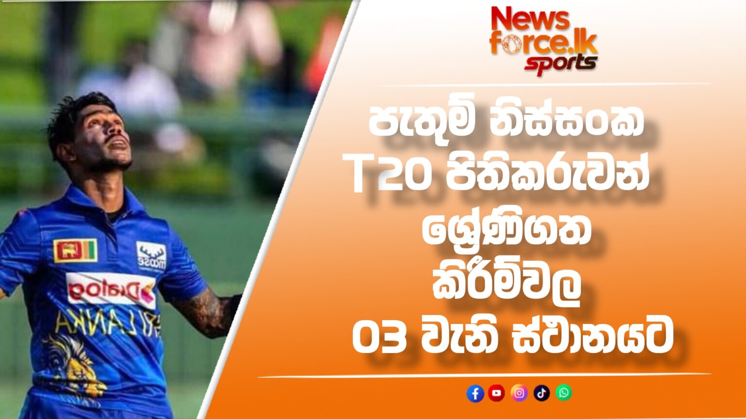 ජාත්යන්තර ක්රිකට් කවුන්සලයේ නවතම විස්සයි විස්ස පිතිකරු ශ්රේණිගත කිරීම්වල 03 වැනි ස්ථානය දක්වා ඉදිරියට පැමිණීමට පැතුම් නිස්සංක සමත්ව තිබෙනවා.