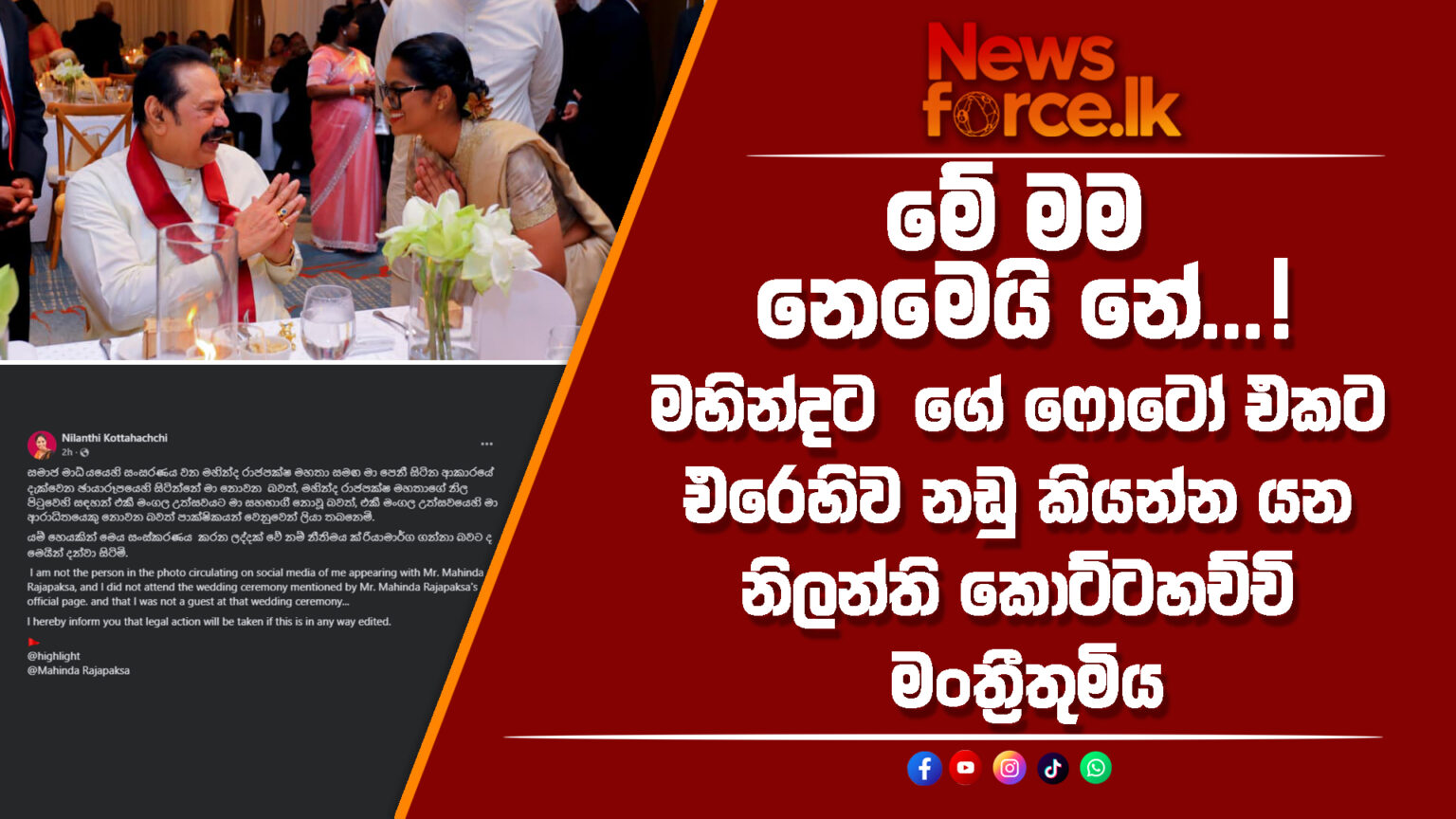 සමාජ මාධ්යවල සංසරණය වන, හිටපු ජනපති මහින්ද රාජපක්ෂ සමග තමා පෙනී සිටින ආකාරය දැක්වෙන ඡායාරූපයේ සිටින්නේ තමා නොවන බව ජාතික ජන බලවේගයේ පාර්ලිමේන්තු මන්ත්රීනි නිලන්ති කොට්ටහච්චි පවසනවා.