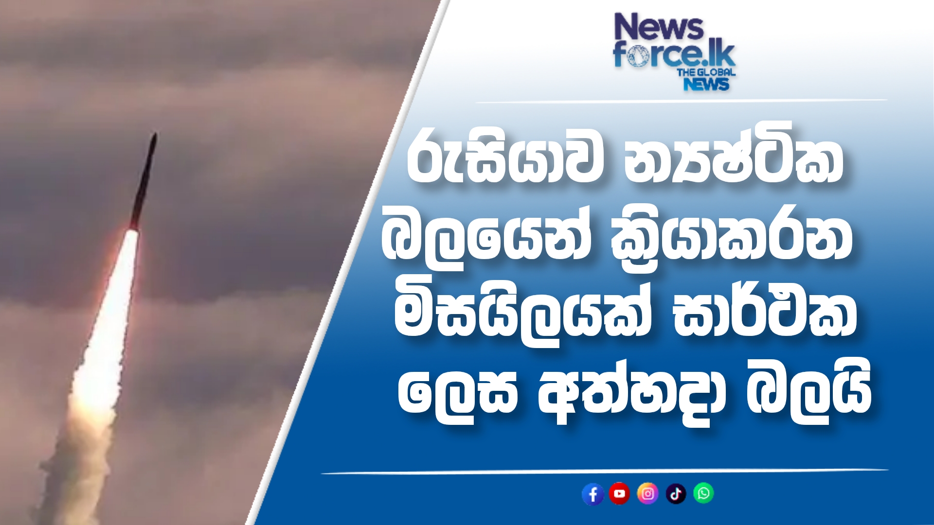 newsforcelk #සත්‍යයේපෙරමුණ #newsforcelkworld #newsforceleklankanews #newsforcesrilanka #newsforcepolitical #රුසියාව #BUREVESTNIK #ක්‍රියාකාරී #න්‍යෂ්ටිකබලය #පුටින් #මිසයිලය #අත්හදාබැලීම #රටපාලනය #අන්තර්ජාතිකසම්බන්ධතා