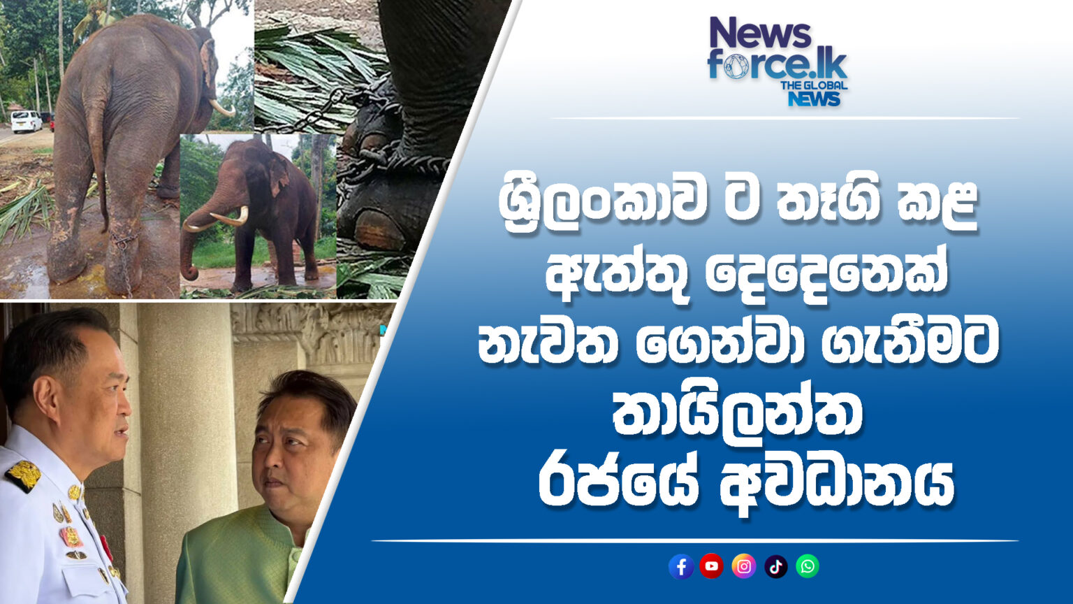 Plai Pratu Pha සහ Plai Srinarong යන නම්වලින් හඳුන්වන තායිලන්ත රජය විසින් ශ්‍රී ලංකාවට පරිත්‍යාග කරන ලද ඇතුන් දෙදෙනෙකු ආපසු ගෙන්වා ගැනීමට එරට රජයේ අවධානය යොමුව තිබේ.