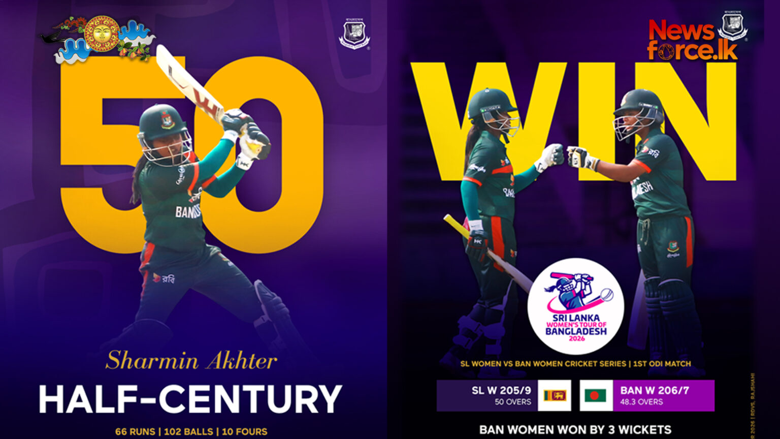 එහිදී ශර්මින් අක්හ්ටෙර් ලකුණු 86ක් රැස්කළාය. පන්දු යැවීමේදී දෙව්මි විහංගා කඩුලු තුනක් දවාගත්තාය.