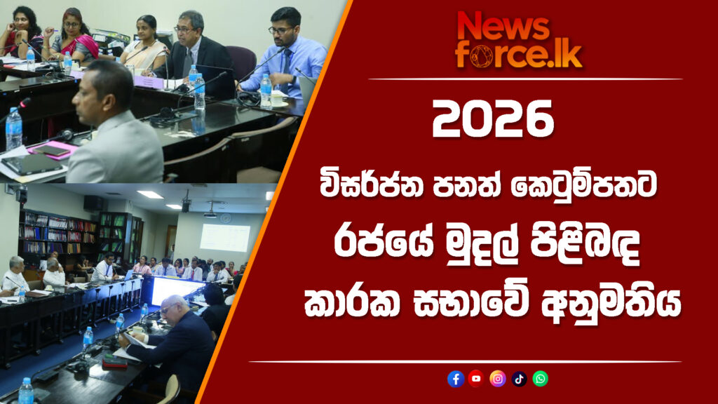 2026 වර්ෂයට අදාළව ඉදිරිපත් කළ විසර්ජන පනත් කෙටුම්පත සඳහා රජයේ මුදල් පිළිබඳ කාරක සභාවේ අනුමතිය හිමිව තිබේ.