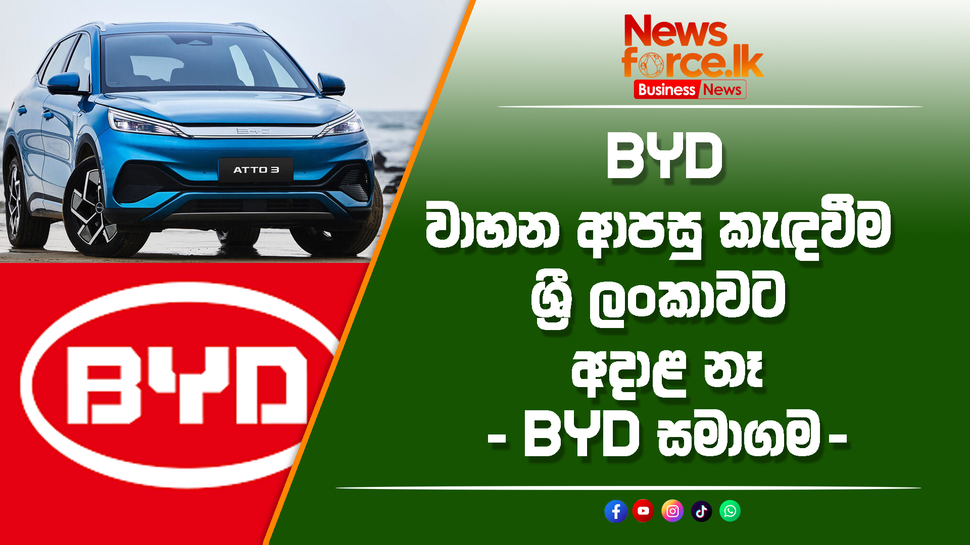 එමෙන්ම, දැනට මෙරට ධාවනය වන කිසිදු BYD මාදිලියකට මෙම තත්ත්වය බලපාන්නේ නැති බවටයි එම සමාගම මෙරට පාරිභෝගිකයින්ට සහතික වී ඇත්තේ.