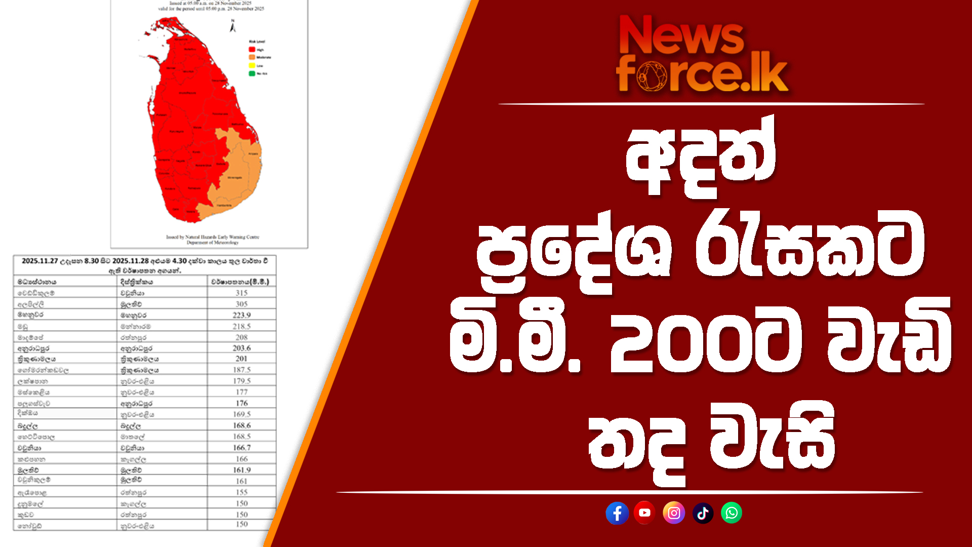 ඊයේ (27) පෙ.ව. 8.30 සිට අද (28) අලුයම 4.30 දක්වා වූ කාලය තුළ වාර්තා වූ වර්ෂාපන අගයන් සැලකිල්ලට ගෙන මෙම තොරතුරු ඉදිරිපත් කර ඇත.