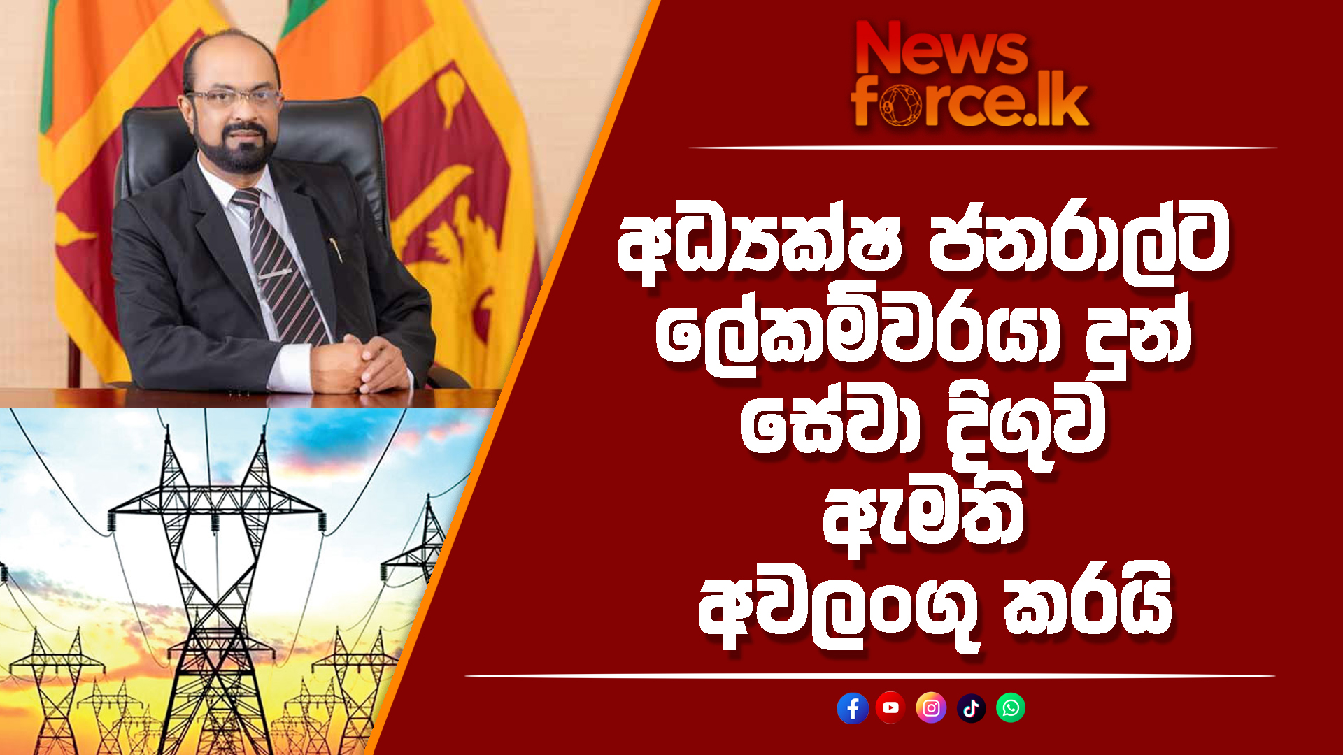 විදුලිබල ක්ෂේත්ර ප්රතිසංස්කරණ ලේකම් කාර්යාලයේ අධ්යක්ෂ ජනරාල්වරයාගේ එච්.පි. නිරෝෂාන්ගේ සේවා කාලය වසරකින් දීර්ඝ කිරීමට අමාත්යංශ ලේකම්වරයා කටයුතු කර තිබූ අතර, එය විෂයභාර අමාත්ය කුමාර ජයකොඩි විසින් අවලංගු කර තිබෙනවා.