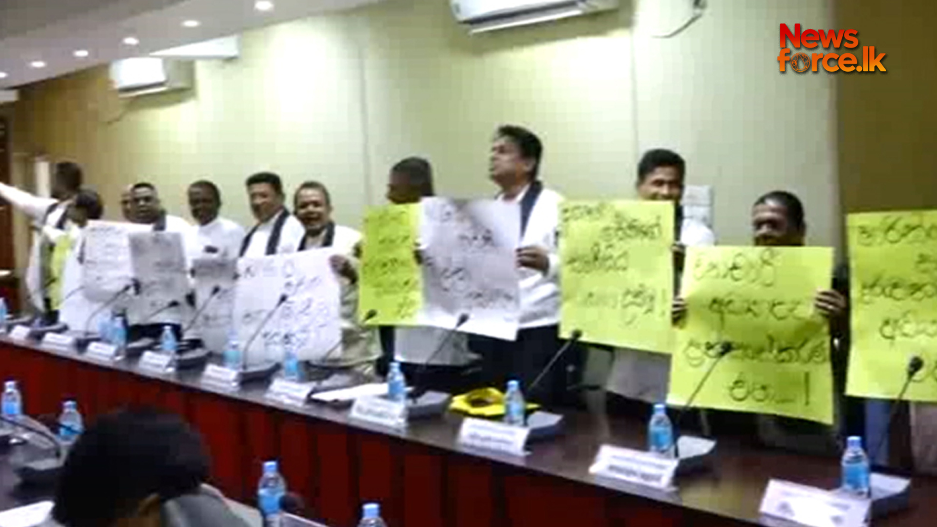 ඉන් පසුව සභා ගර්භයේ සිට විරෝධතා පුවරු ප්රදර්ශනය කරමින් නැවත වරක් විරෝධතාවයේ නිරතව එය අවසන් කළා.