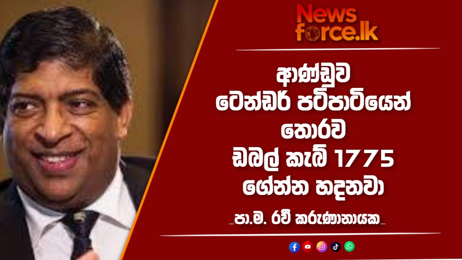 ඩබල් කැබ් 1775ක් දින 12ක් ඇතුළත ටෙන්ඩර් කරලා ගන්න තමයි හදන්නේ. 2000ක් ගේන්න ගිය එක 1775 වුණේ මන්ත්‍රිවරු 225 අඩු කරලා. මේ වාහන ටික ගේන්න ලංකා රජයට රු බිලියන 42.8ක් වියදම් වෙනවා