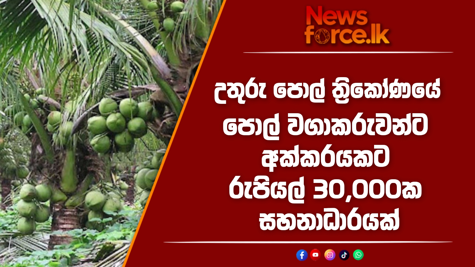 උතුරු පොල් ත්‍රිකෝණයේ පොල් වගාකරුවන්ට අක්කරයකට රුපියල් 30,000ක සහනාධාරයක්.