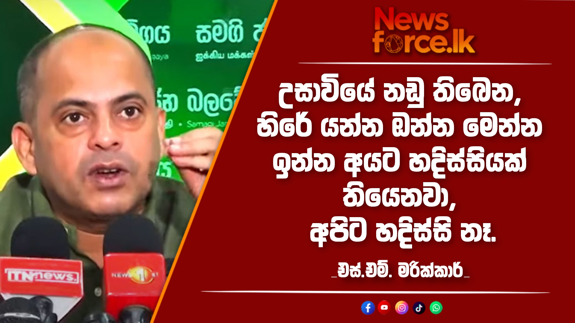 newsforcelk #සත්යයේපෙරමුණ #newsforcelkworld #newsforceleklankanews #newsforcesrilanka #newsforcepolitical #සමගිජනබලවේගය #SMMarikkar #රැළිය #පාර්ලිමේන්තු #කොවිඩ් #වඳකොත්තු #මාධ්යහමුව #හෘදසාක්ෂිය #නඩු #හදිස්සිය