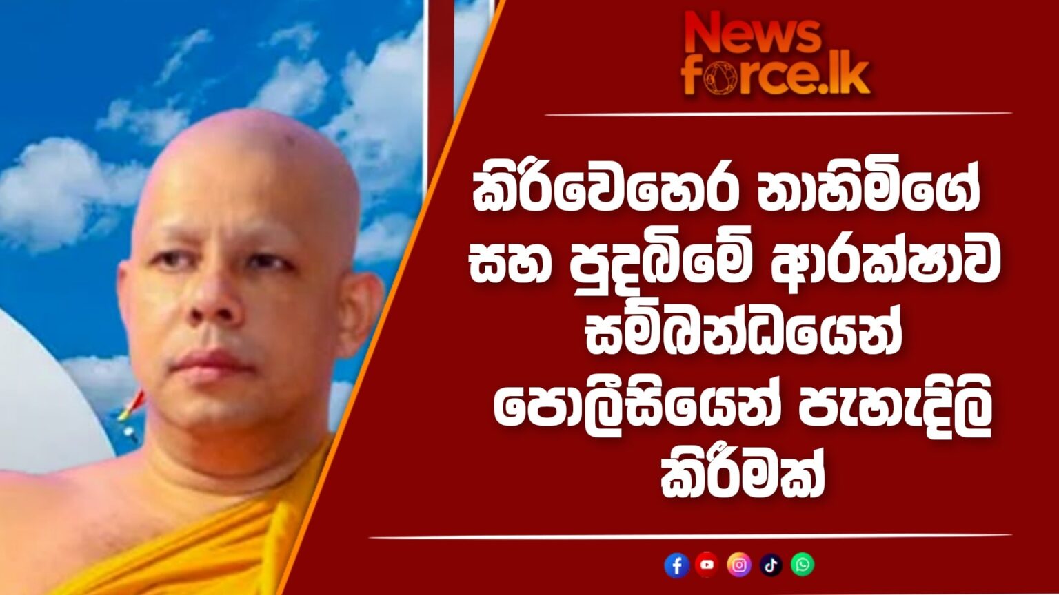 ඒ අනුව, කතරගම කිරිවෙහෙර පුරාණ විහාරස්ථානයේ නායක ස්වාමීන් වහන්සේ වන කොබවක ධම්මින්ද ස්වාමීන් වහන්සේගේ ආරක්ෂාව හෝ පුදබිමෙහි ආරක්ෂාව ඉවත් කර ඇති බවට විද්‍යුත් හා මුද්‍රිත මාධ්‍ය ඇතුළු සමාජ මාධ්‍ය ඔස්සේ සංසරණය වන පුවත අසත්‍ය පුවතක් බවටත් නියෝජ්‍ය පොලිස්පති මාතර සහ හම්බන්තොට දිසාව විසින් වැඩිදුරටත් වාර්තා කර ඇත.