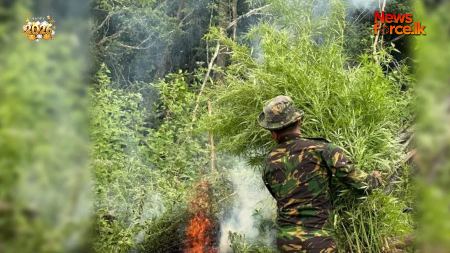 පොලිස් භාරයට ගත් ගංජා ගස් සියල්ල ගිණි තබා විනාශ කර තිබෙනවා .