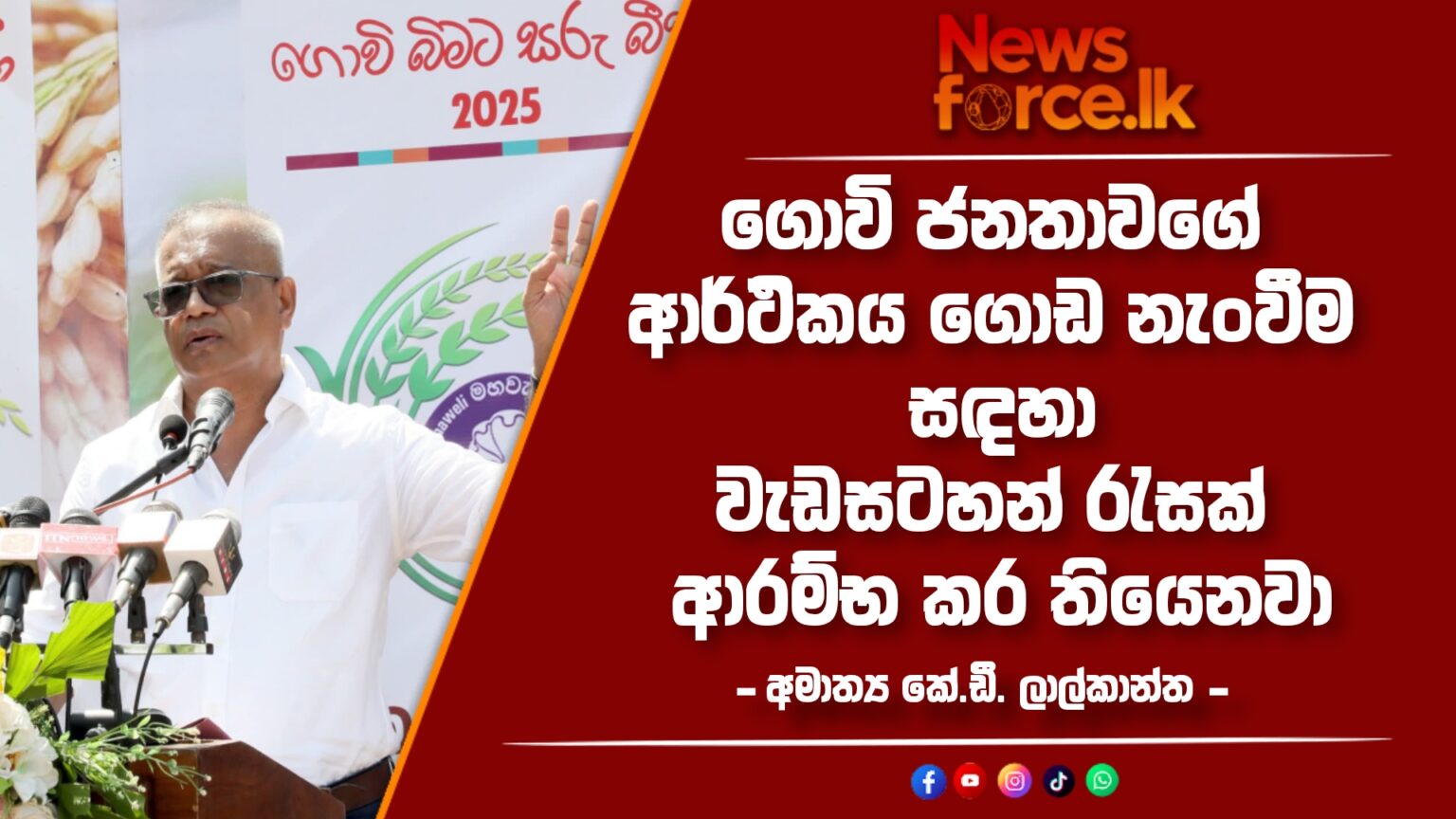 ගොවි ජනතාවගේ ආර්ථිකය ගොඩ නැංවීම සඳහා වැඩසටහන් රැසක් ආරම්භ කර තියෙනවා කෘෂිකර්ම, පශු සම්පත්, ඉඩම් සහ වාරිමාර්ග අමාත්ය කේ.ඩී. ලාල්කාන්ත මහතා