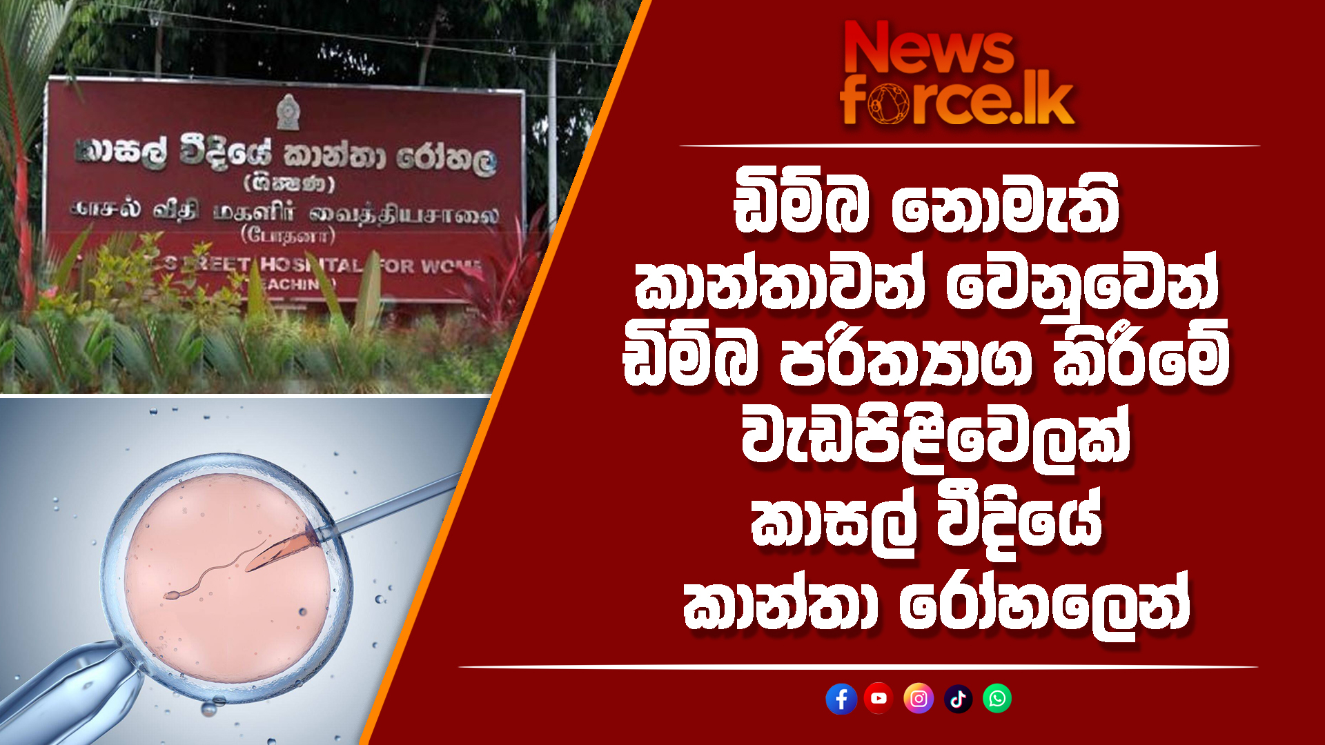 ඩිම්බ නොමැති කාන්තාවන් වෙනුවෙන් ඩිම්බ පරිත්‍යාග කිරීමේ වැඩපිළිවෙලක් කාසල් වීදියේ කාන්තා රෝහලෙන්