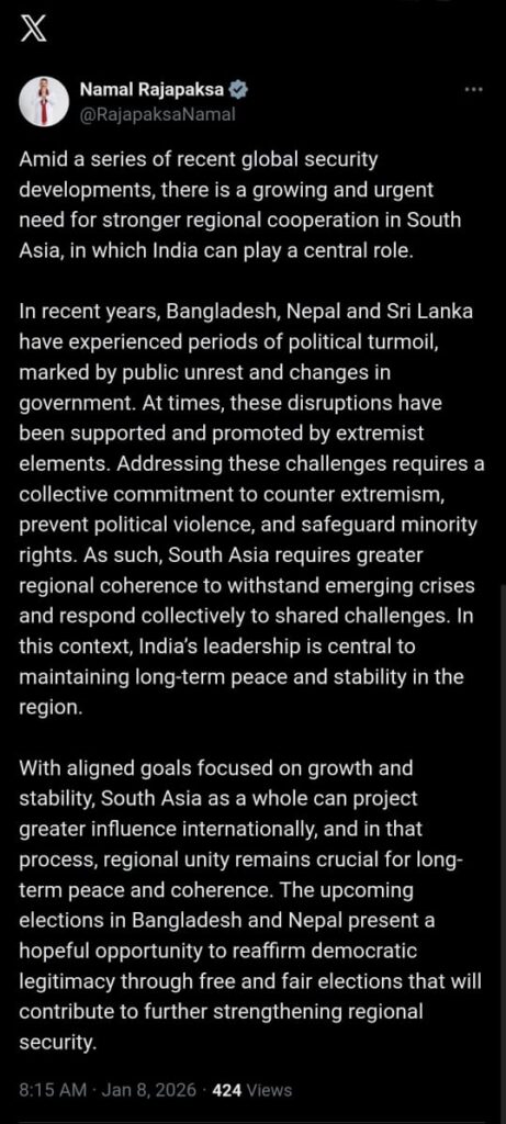 නාමල් අද උදෑසනින් නිකුත් කල X පණිවිඩය.