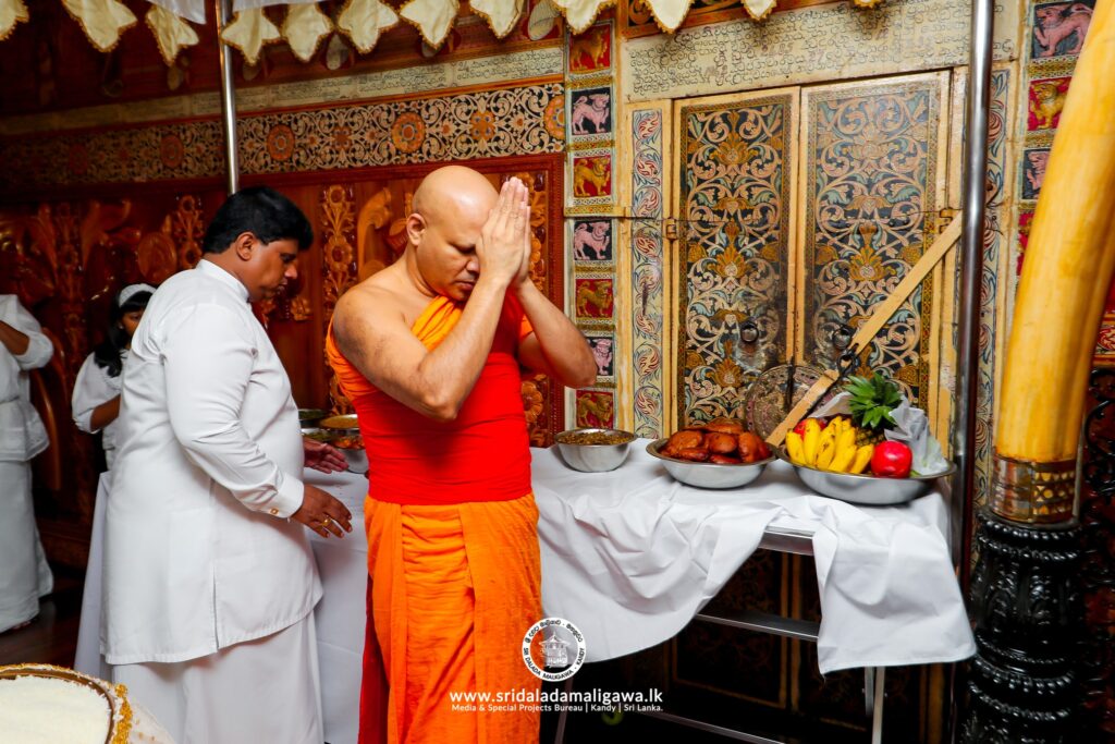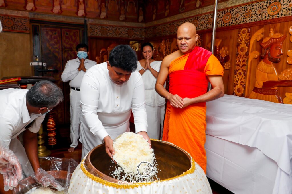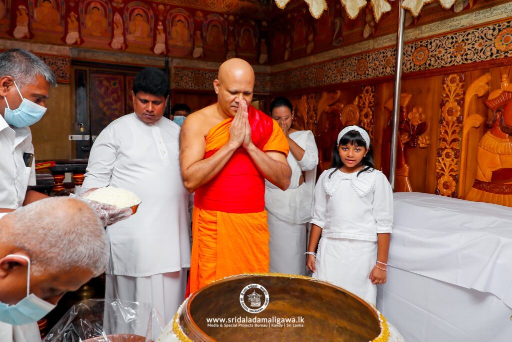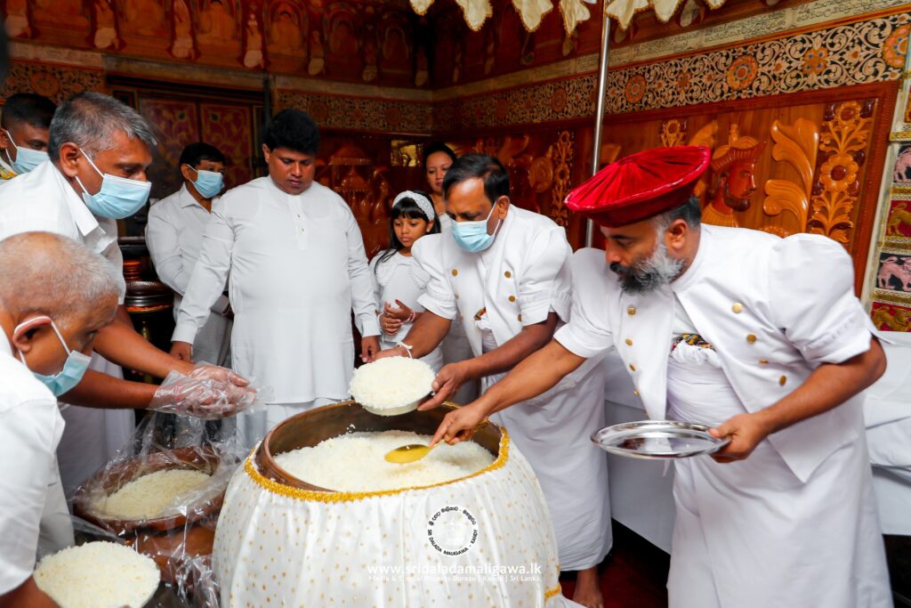 ඒ ශ්රී දළදා මාළිගාවේදී වන අතර මේ සඳහා දළදා තේවාව භාර පූජ්ය තිබ්බටුවාවේ ශ්රී මේධංකර නාහිමියන්ගේ හා දියවඩන නිලමේ ප්රදීප් නිලංග දෑල මහතා මෙන්ම අලුත් සහල් මංගල්යය සඳහා දළදා මාළිගාවේ කාර්යභාර නිලයන්ද එක්ව සිටියහ.