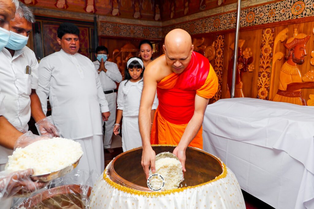 නව වසරේ නැවුම් සහලින් ශ්රී දළදා සමිඳුන් පිදීම පෙර රජ දවසේ සිටම සෑම වසරකම දුරුදු පුන් පොහෝ දින සිදුකරනු ලබයි.