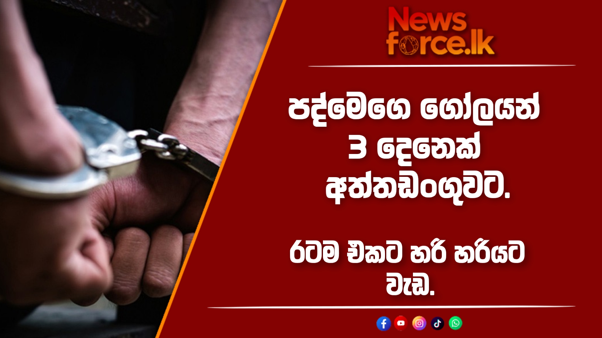 පද්මෙගෙ ගෝලයන් 3 දෙනෙක් අත්තඩංගුවට. ‘රටම එකට’ හරි හරියට වැඩ.