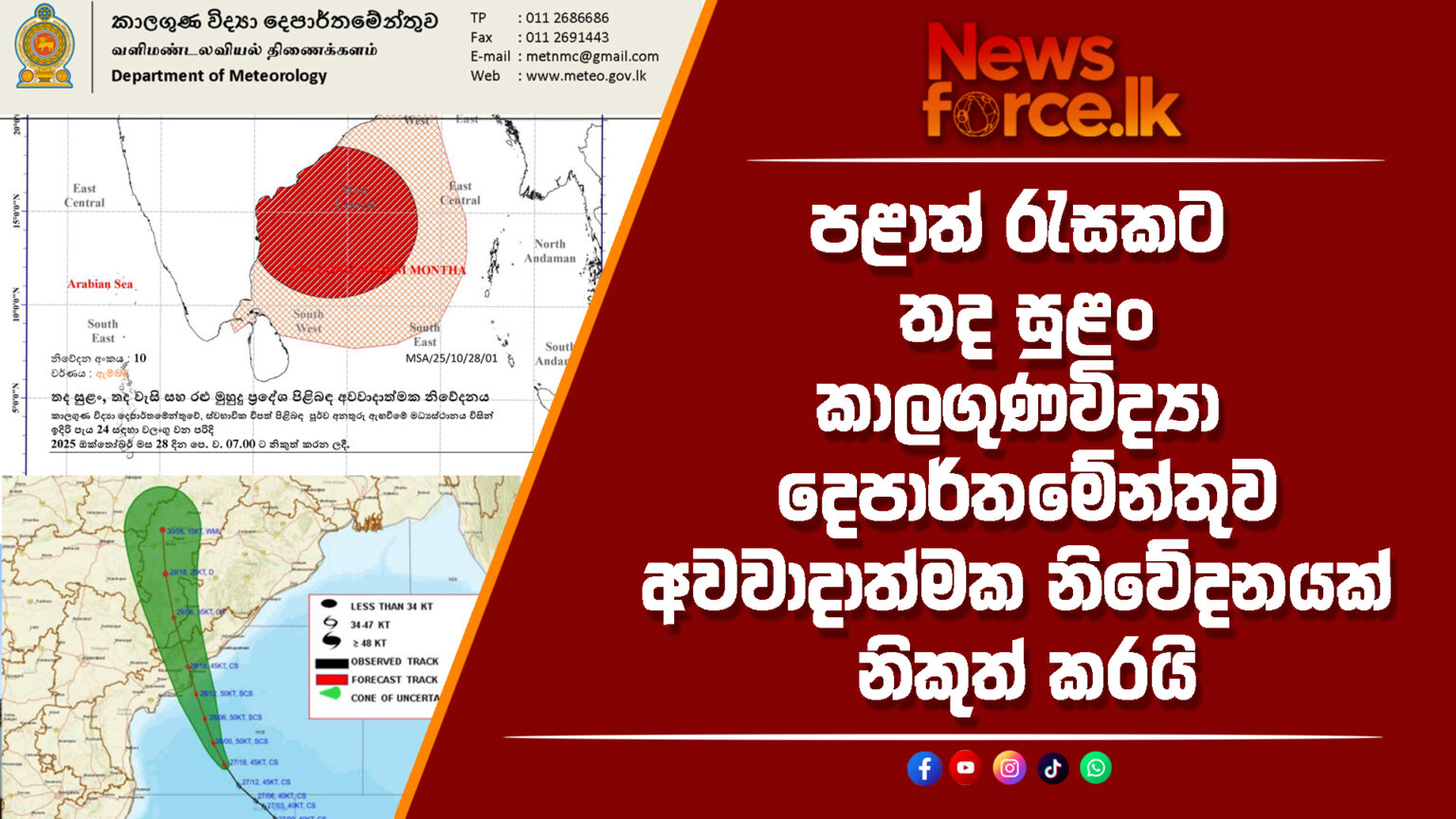 සැලකිලිමත් වන ලෙස දැනුම්දෙමින් කාලගුණවිද්‍යා දෙපාර්තමේන්තුව විසින් තද සුළං පිළිබඳ අවවාදාත්මක නිවේදනයක් නිකුත් කර තිබේ.