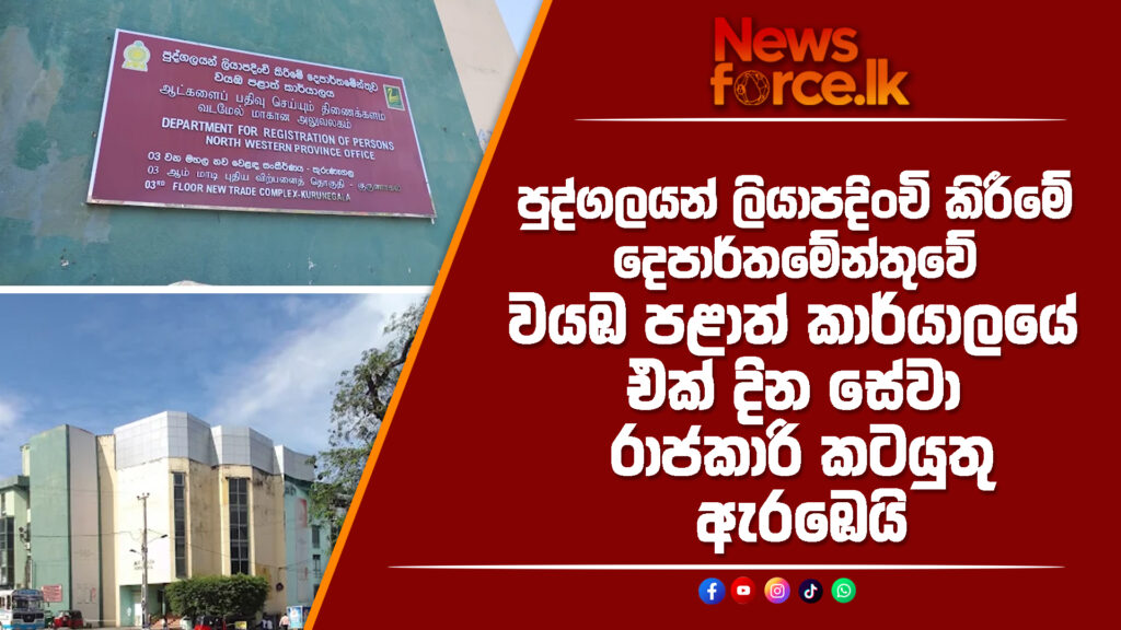 පුද්ගලයන් ලියාපදිංචි කිරීමේ දෙපාර්තමේන්තුවේ වයඹ පළාත් කාර්යාලයේ එක් දින සේවා රාජකාරි කටයුතු ඇරඹෙයි