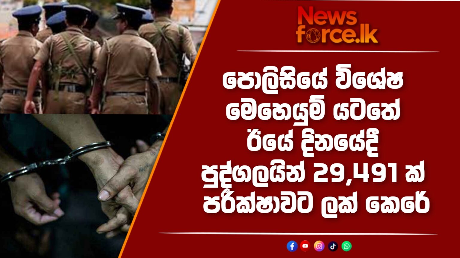 අපරාධ සහ මත්ද්රව්ය නිවාරණ මෙහෙයුම් යටතේ ඊයේ (05) දිනයේදී පුද්ගලයන් 29,491 ක් පරීක්ෂාවට ලක් කර ඇති බව පොලිසිය පවසනවා.
