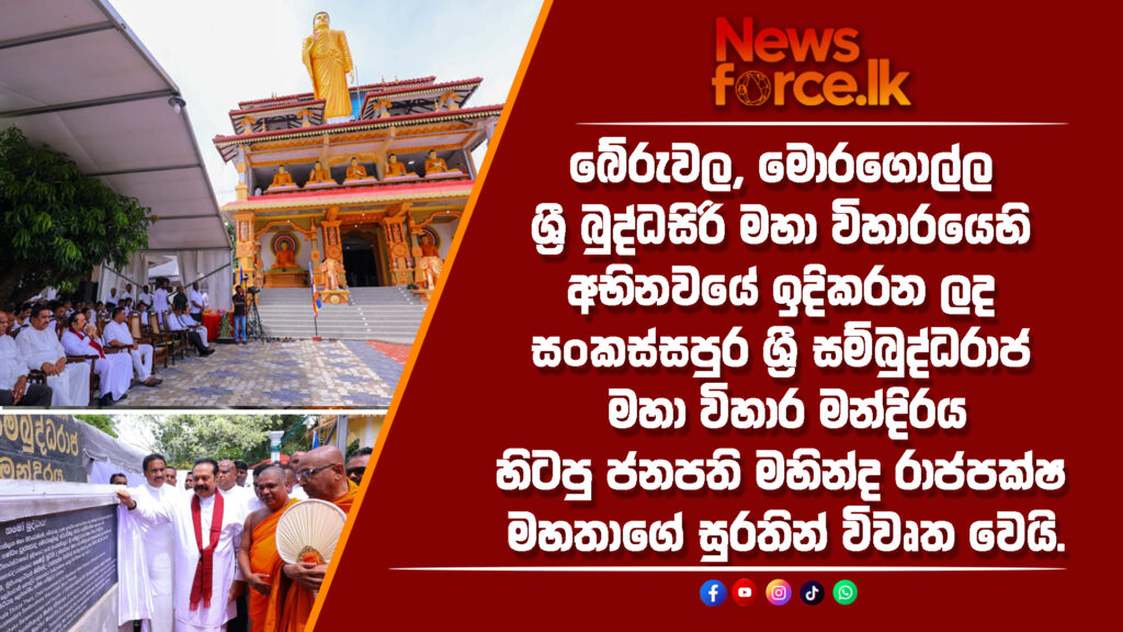 බේරුවල, මොරගොල්ල ශ්රී බුද්ධසිරි මහා විහාරයෙහි අභිනවයෙන් ඉදිකරන ලද සංකස්සපුර ශ්රී සම්බුද්ධරාජ මහා විහාර මන්දිරය විවෘත කිරීමේ පුණ්යමහෝත්සවය සඳහා පසුගිය 26වන දින බැති සිතින් සම්බන්ධ වුණෙමි.