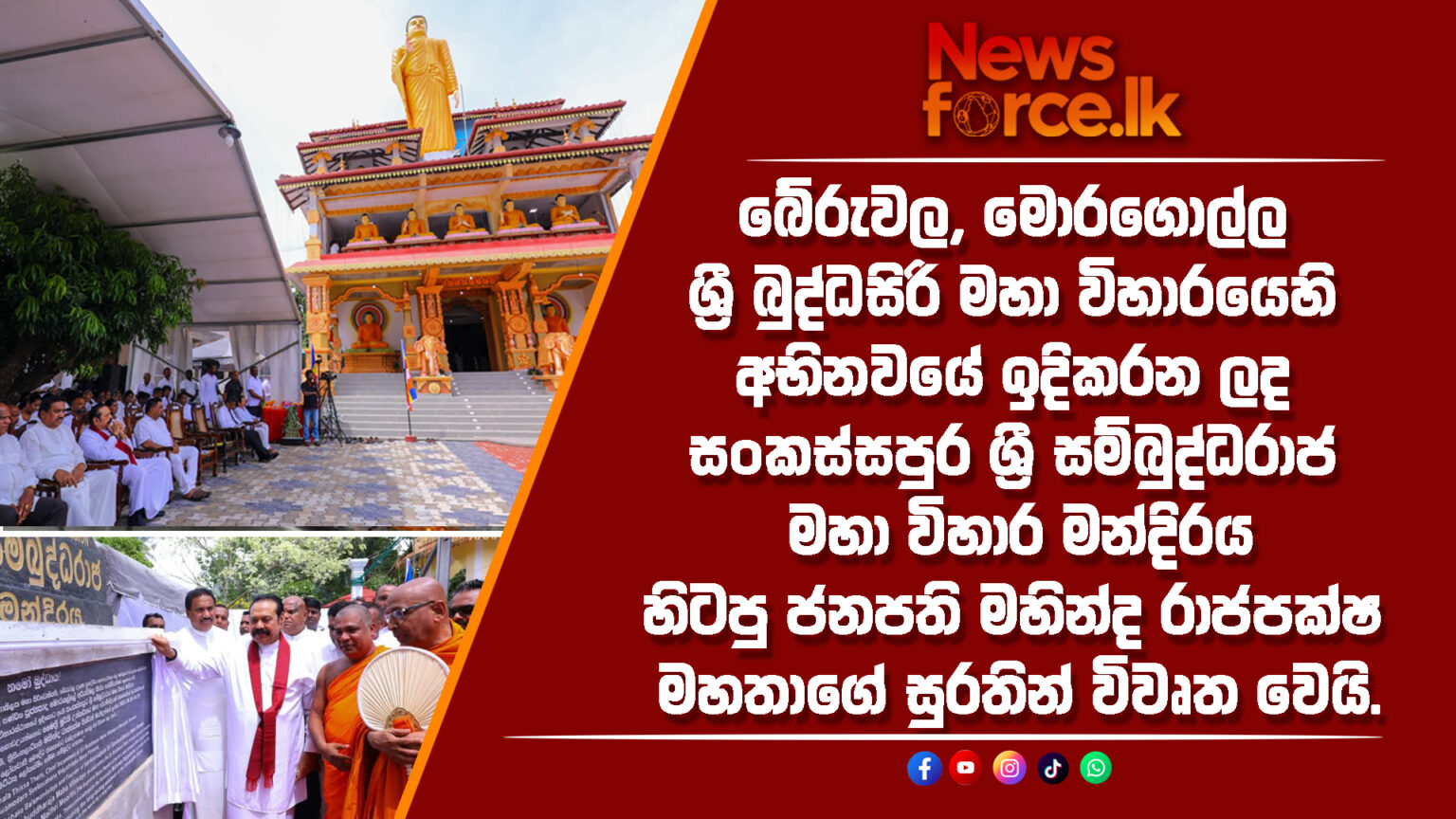 බේරුවල, මොරගොල්ල ශ්‍රී බුද්ධසිරි මහා විහාරයෙහි අභිනවයෙන් ඉදිකරන ලද සංකස්සපුර ශ්‍රී සම්බුද්ධරාජ මහා විහාර මන්දිරය විවෘත කිරීමේ පුණ්‍යමහෝත්සවය සඳහා පසුගිය 26වන දින බැති සිතින් සම්බන්ධ වුණෙමි.