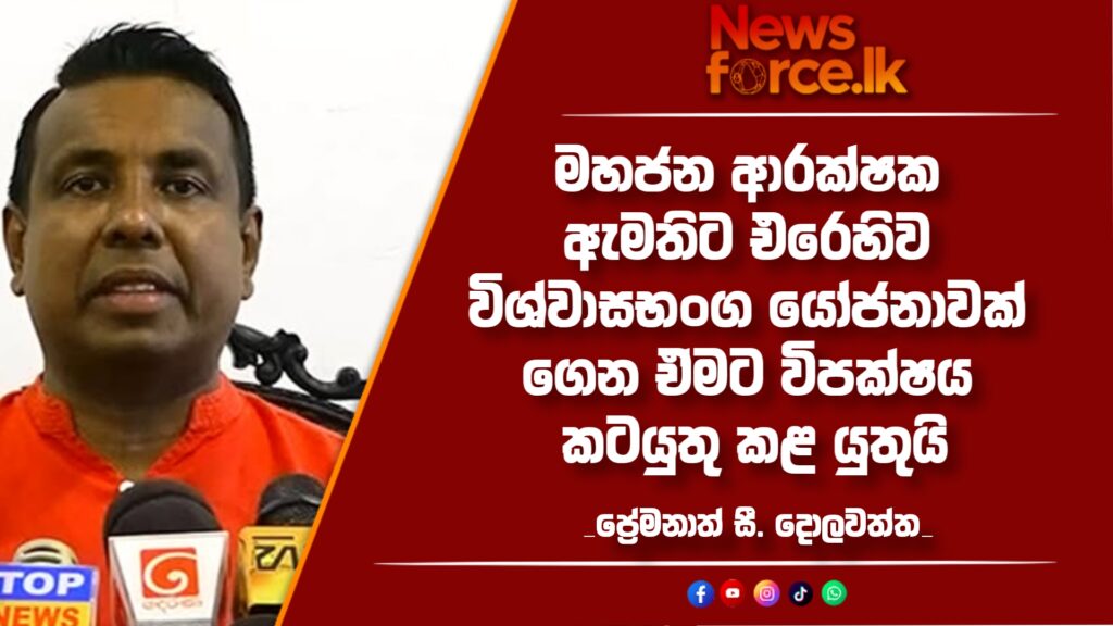 මහජන ආරක්ෂක අමාත්යවරයාට එරෙහිව විශ්වාසභංග යෝජනාවක් ගෙන ඒමට විපක්ෂය කටයුතු කළ යුතු බව හිටපු පාර්ලිමේන්තු මන්ත්රී ප්රේමනාත් සි දොලවත්ත මහතා පවසයි.