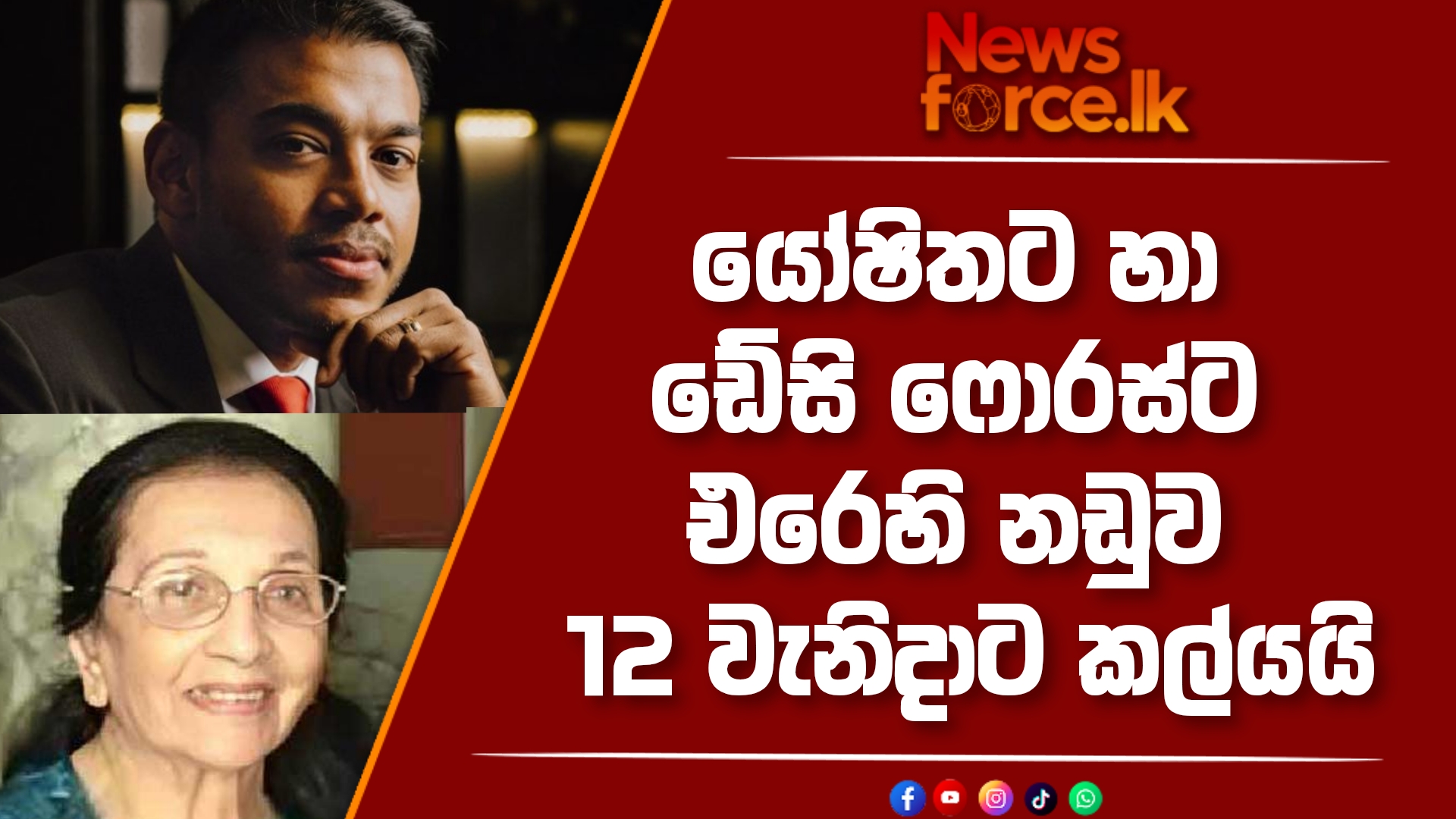 යෝෂිතට හා ඩේසි ෆොර්ස්ට එරෙහි නඩුව 12 වැනිදාට කල්යයි.
