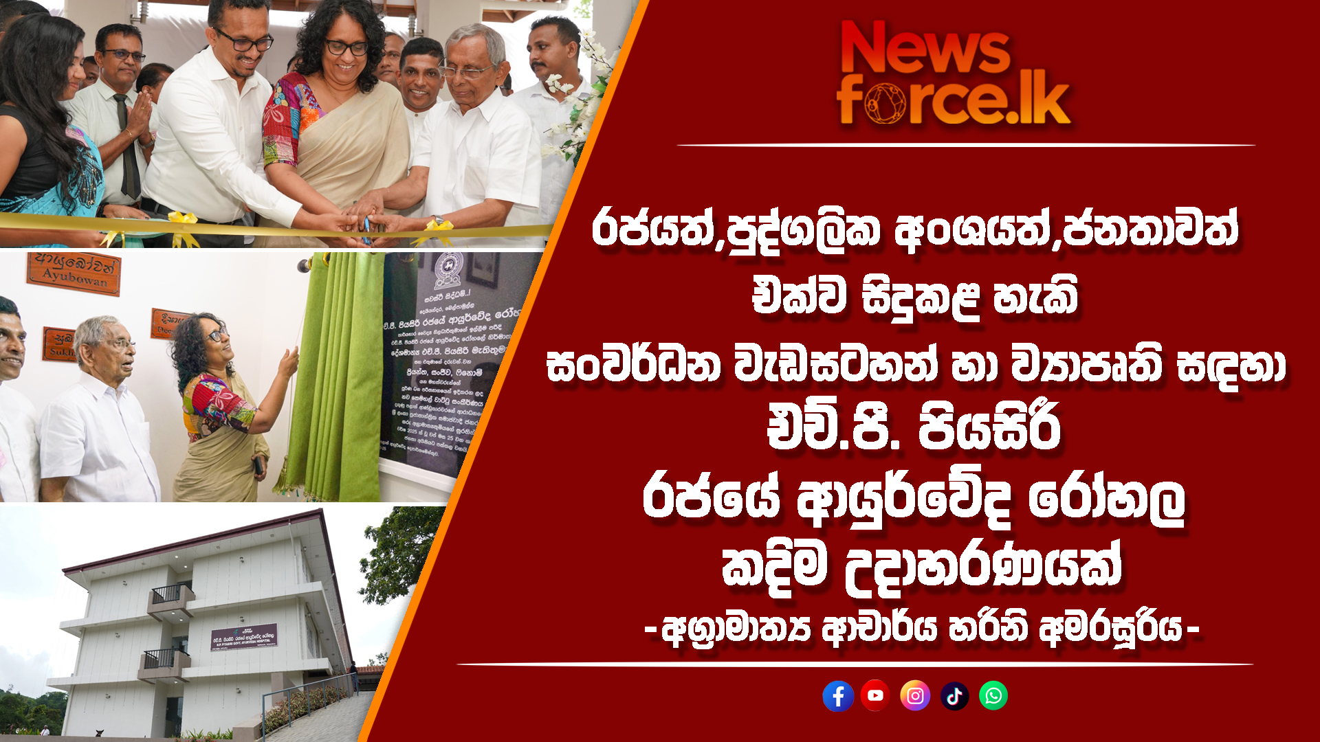 රජයත් , පුද්ගලික අංශයත් , ජනතාවත් එක්ව සිදුකළ හැකිසංවර්ධන වැඩසටහන් හා ව්‍යාපෘති සඳහා එච්.පී. පියසිරී රජයේ ආයුර්වේද රෝහලකදිම උදාහරණයක් -අග්‍රාමාත්‍ය ආචාර්ය හරිනි අමරසූරිය-