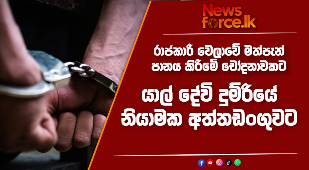 රාජකාරී වෙලාවේ මත්පැන් පානයකිරීමේ චෝදනාවක් සම්බන්ධයෙන් යාල් දේවී දුම්රියේ ප්‍රධාන දුම්රිය නියාමකවරයා දුම්රිය ආරක්ෂක නිලධාරීන් විසින් අද (25) පස්වරුවේ අනුරාධුරයේ දී අත්අඩංගුවට ගෙන ඇත.
