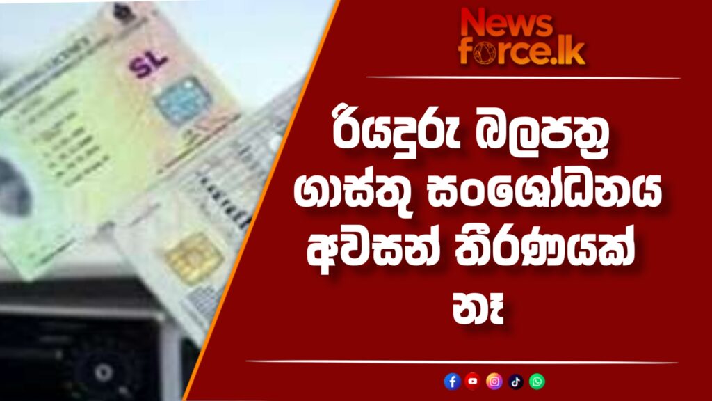 Home»උණුසුම් පුවත්»රියදුරු බලපත්‍ර ගාස්තු සංශෝධනය ගැන අවසන් තීරණයක් නෑ.