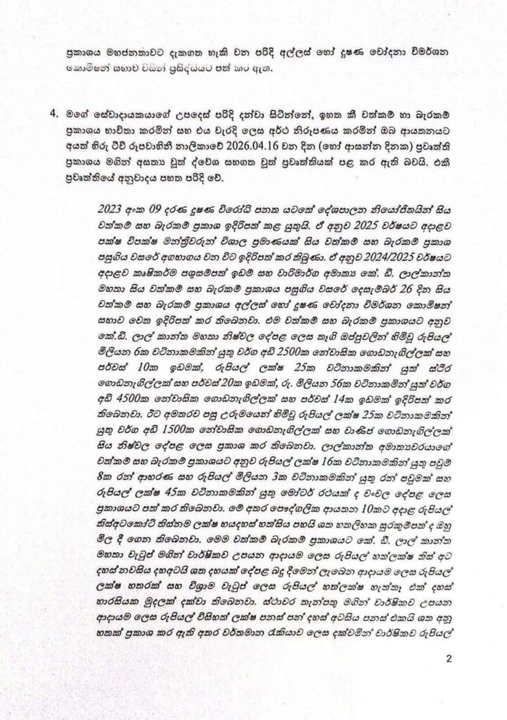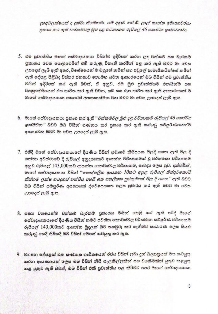 රු. 143,000ක සුරැකුම්පත් කෝටි 38ක් ලෙස දක්වමින් හා අසත්ය වත්කම් ප්රකාශ කරමින් සිදුකල අපහාසයට එරෙහිව