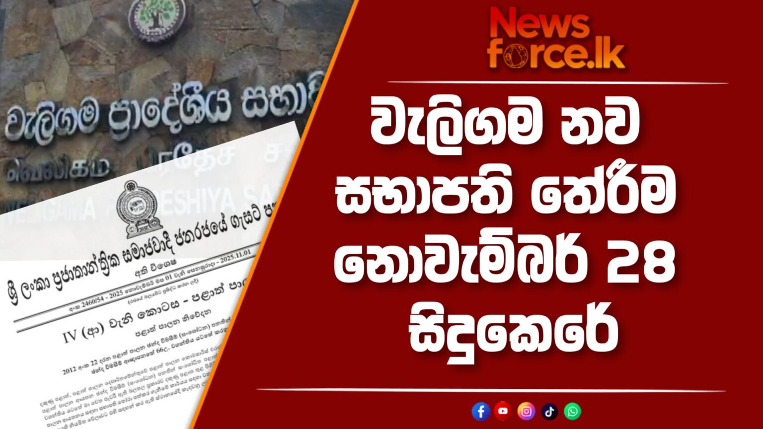වැලිගම ප්‍රාදේශීය සභාවේ නව සභාපතිවරයා තෝරා පත්කර ගැනීම එළඹෙන 28 වැනිදා සිදු කිරීමට තීරණය කර තිඛෙනවා.