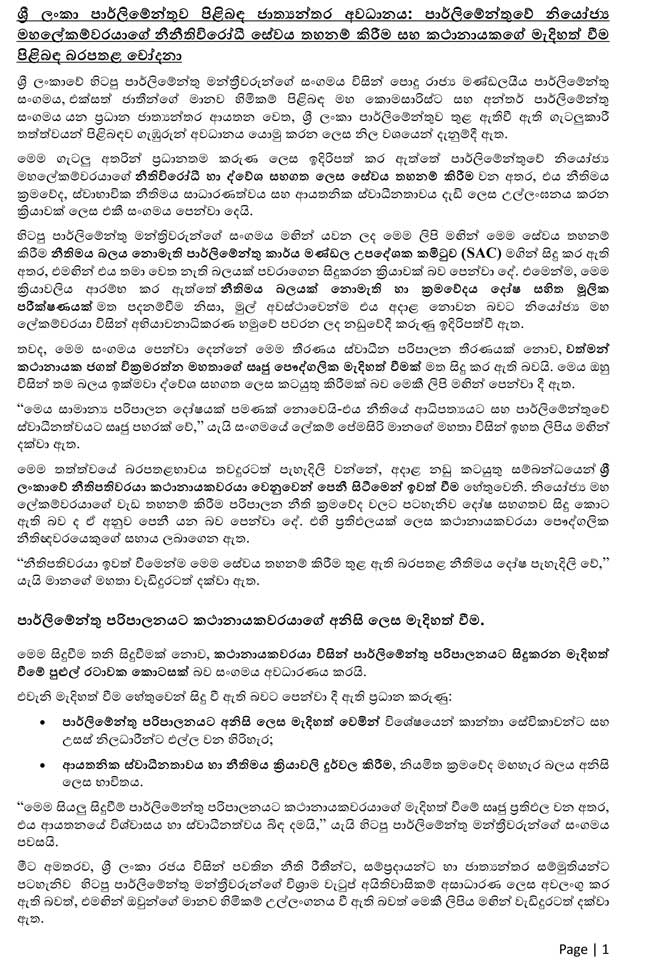 එය නීතිමය ක්රමවේද, ස්වාභාවික නීතිමය සාධාරණත්වය සහ ආයතනික ස්වාධීනතාවය දැඩි ලෙස උල්ලංඝනය කරන ක්රියාවක් ලෙස එම සංගමය පෙන්වා දී තිබේ.