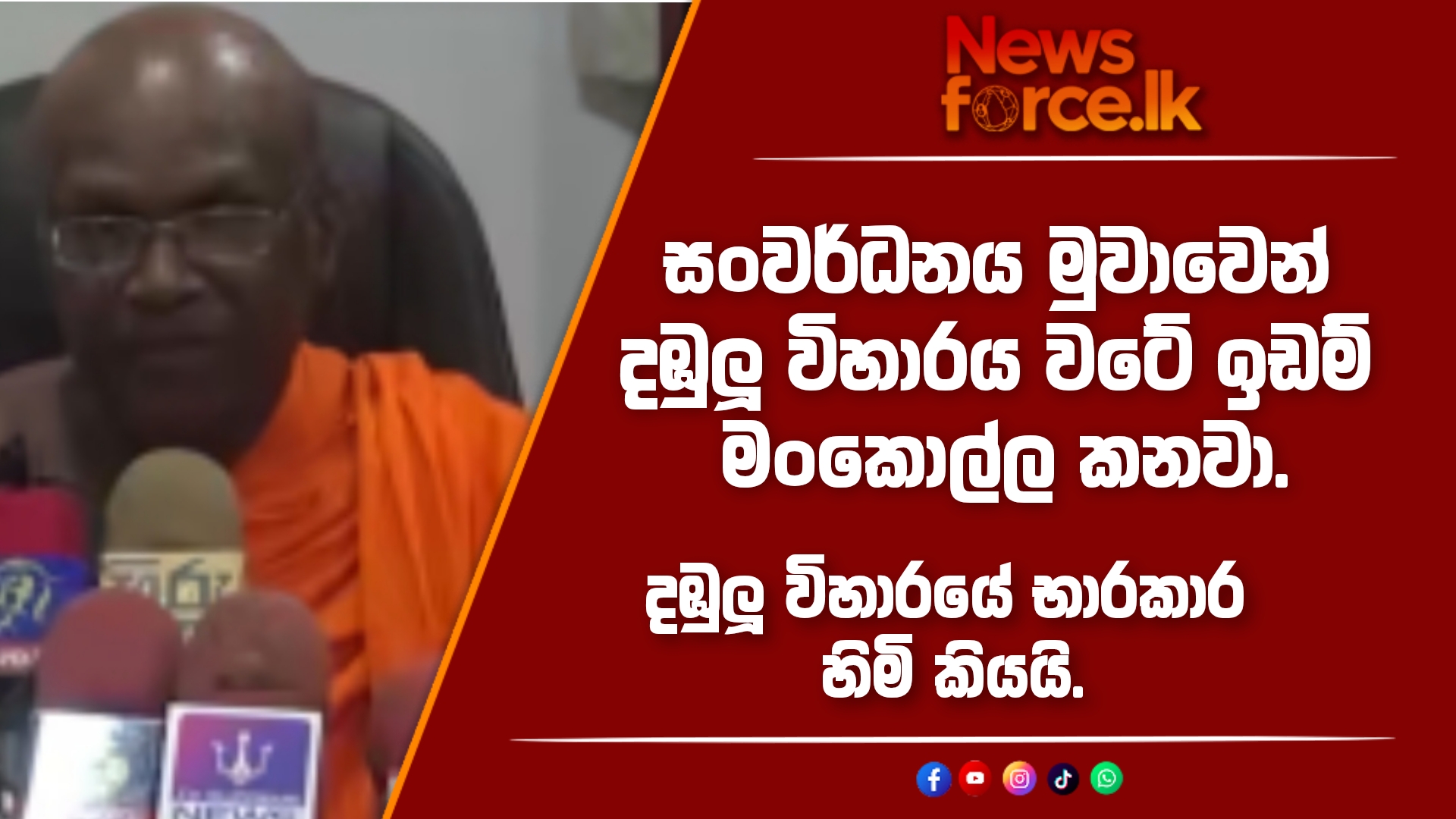 ඓතිහාසික දඹුලු රජමහා විහාරයේ භාරකාර පූජ්‍ය දඬුබැඳිරුප්පේ මහින්ද හිමි 26 උදෑසන මාධ්‍ය හමුවක් කැඳවමින්, ප්‍රකාශ කරන ලද්දේ,