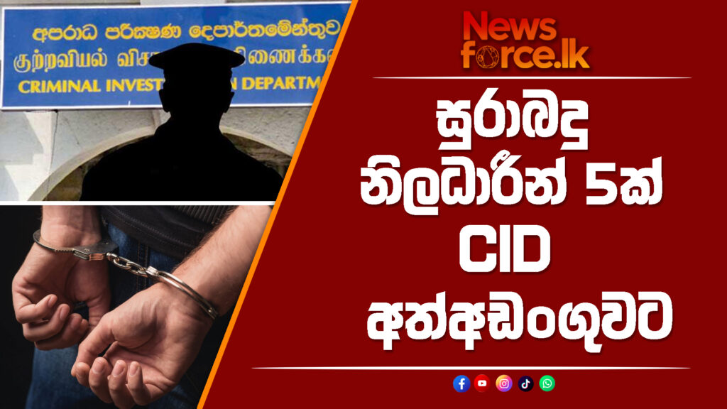 සුරාබදු දෙපාර්තමේන්තුවේ මත්ද්රව්ය නාශක කාර්යාංශයේ නිලධාරීන් පස් දෙනෙකු අපරාධ පරීක්ෂණ දෙපාර්තමේන්තුව විසින් අත්අඩංගුවට ගෙන තිබේ.