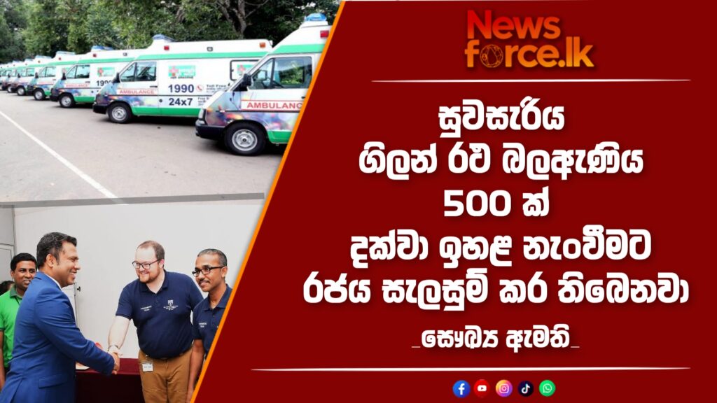 සුවසැරිය ගිලන් රථ බලඇණිය 500 ක් දක්වා ඉහළ නැංවීමට රජය සැලසුම් කර තිබෙනවා – සෞඛ්‍ය ඇමති.
