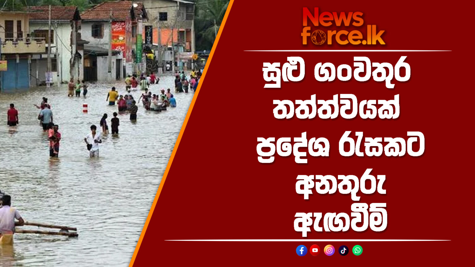 ඉදිරි පැය 24 තුළ මෙලෙස සුළු ගංවතුර තත්ත්වයක් ඇතිවීමේ අවදානමක් පවතින බවට වාරිමාර්ග දෙපාර්තමේන්තුව අනතුරු අඟවා තිබේ.