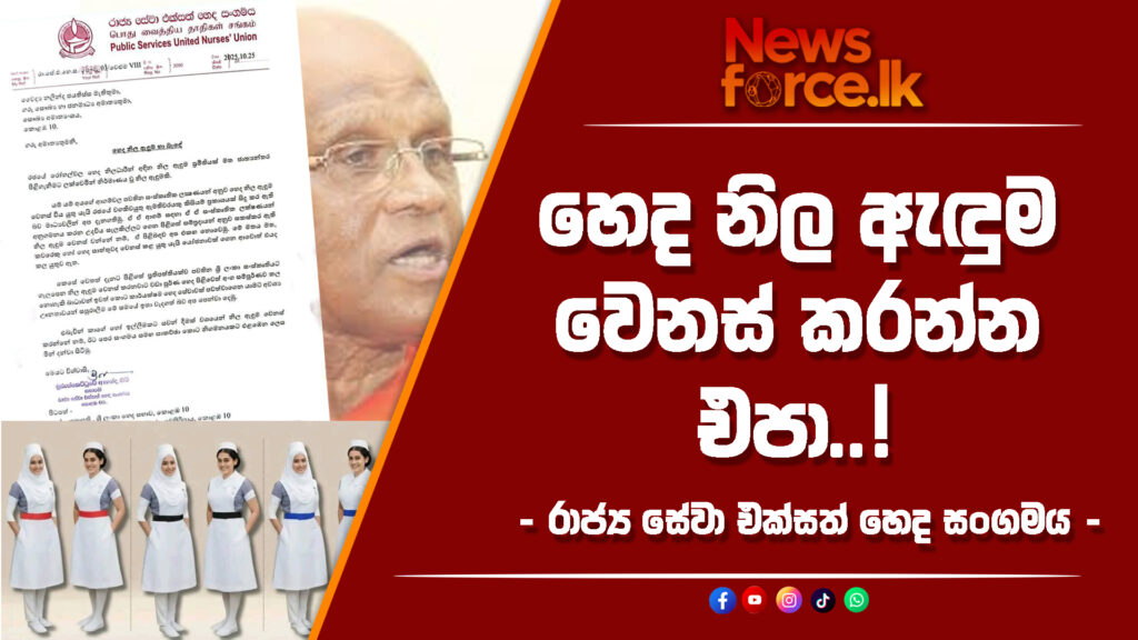 රජයේ රෝහල්වල හෙද නිලධාරින්ගේ හෙද නිල ඇඳුම කිසියම් ආගම් හා සංස්කෘතීන් අනුගමනය කරන පුද්ගලයින් ගැන සිතා වෙනස් කරන්නේ නම් එයට එකඟ නොවන බව රාජ්ය සේවා එක්සත් හෙද සංගමය සෞඛ්ය ඇමතිවරයාට ලිඛිතව දැනුම් දී තිබෙනවා.