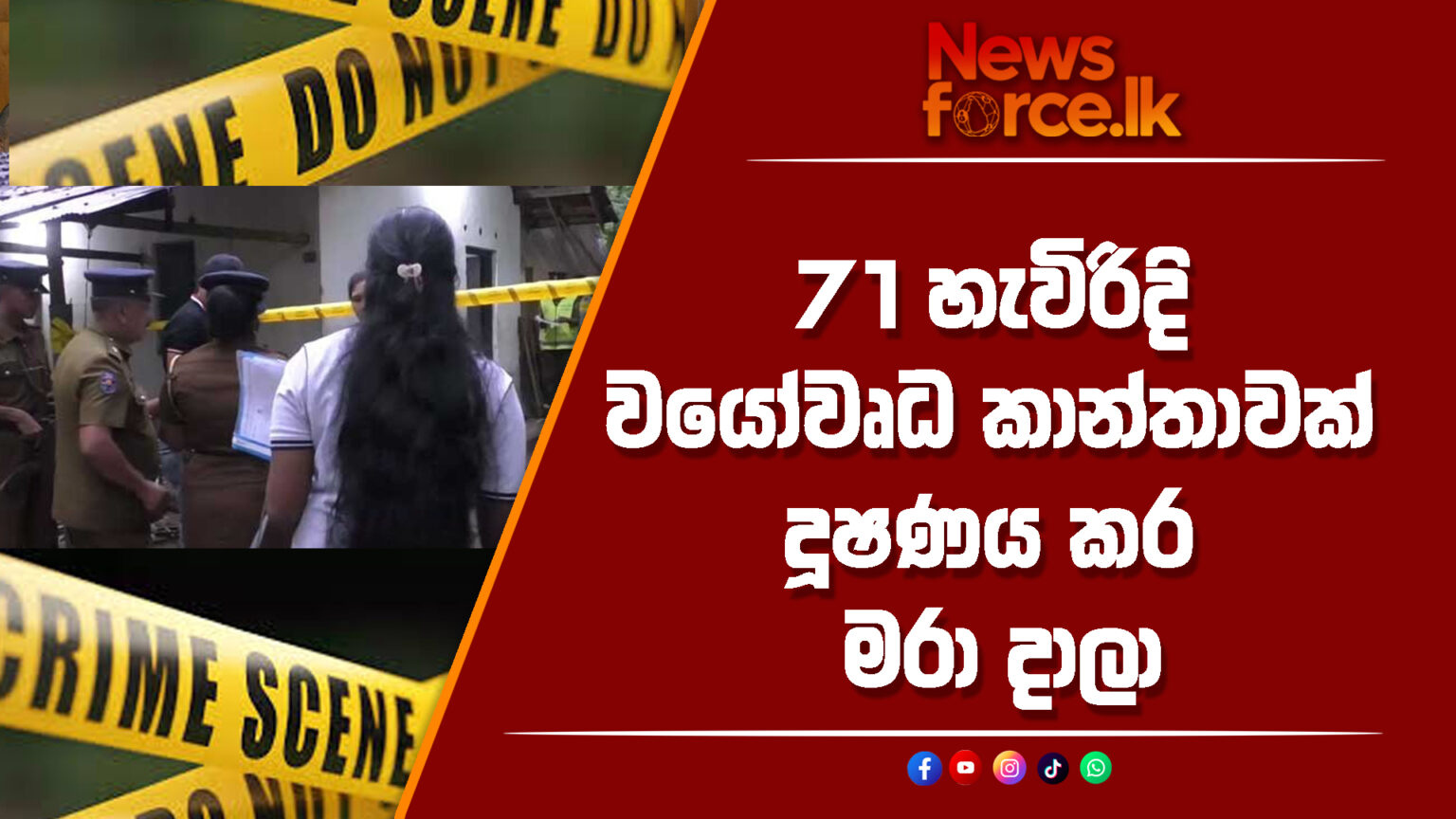 වයෝවෘධ කාන්තාවක් දූෂණය කර මුහුණට මිරිස් කුඩු ගසා ගෙල මිරිකා ඇයව ඝාතනය කර ඇති සංවේදී පුවතක් මිනුවන්ගොඩ ප්‍රදේශයෙන් වාර්තා වේ.