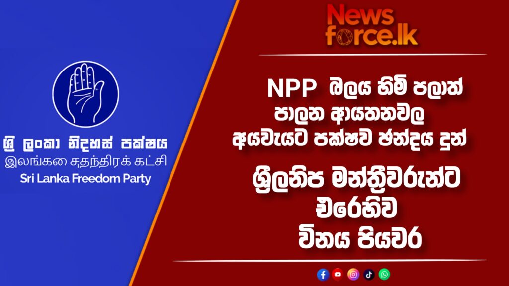 පළාත් පාලන ආයතනවල අයවැය සම්මත කිරීම්වලදී ජාතික ජන බලවේගයට සහයෝගය ලබා දුන් ශ්රී ලංකා නිදහස් පක්ෂ සභිකයින් සම්බන්ධව දැඩි විනය පියවර ගන්නා බව ශ්රි ලංකා නිදහස් පක්ෂය පවසනවා.