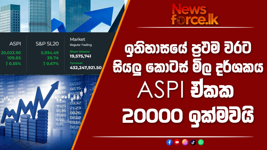 අද (04) කොළඹ කොටස් වෙළෙඳපොළ ගනුදෙනු ආරම්භ වී විනාඩි 10ක් වැනි කාලයක් තුළ සියලු කොටස් මිල දර්ශකයේ අගය ඉතිහාසයේ ප්රථම වරට ඒකක 20,000 සීමාව ඉක්ම වීමට සමත් විය.